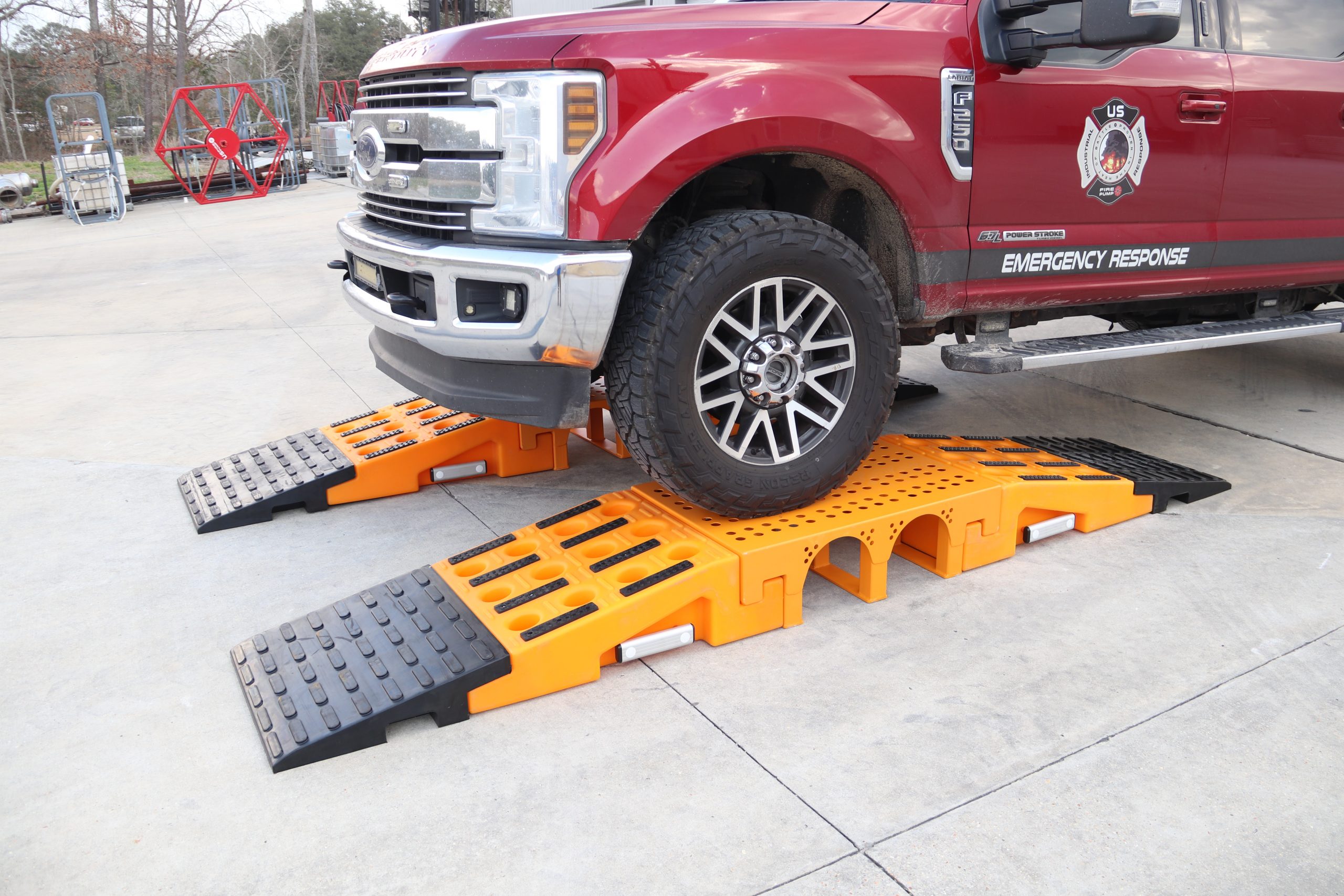 When laying these large diameter hoses on the ground, roadways and paths become non drivable, which can sometimes block access to important areas. Driving over these hoses not only damages them, but it also endangers your personnel and equipment. Protection of these hoses in emergency situations is key, that’s why we have developed hose ramps to aid in protecting your crew and equipment.